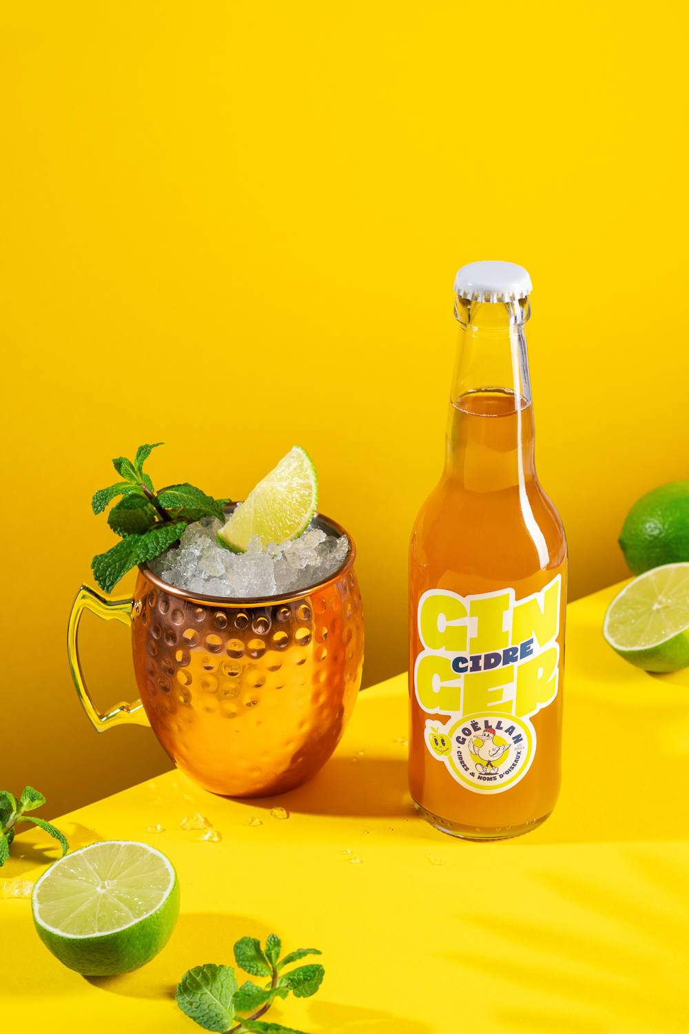 Un shooting en accord avec la direction artistique de la marque, reprenant les aplats de couleurs et une esthétique définitivement pop, moderne et fraîche. L’idée : sortir définitivement des codes traditionnel du cidre. Moderniser l’image du produit, en mettant l’accent sur un usage décontracté et élégant, à base de cocktails signature. Un vrai projet coup de coeur !