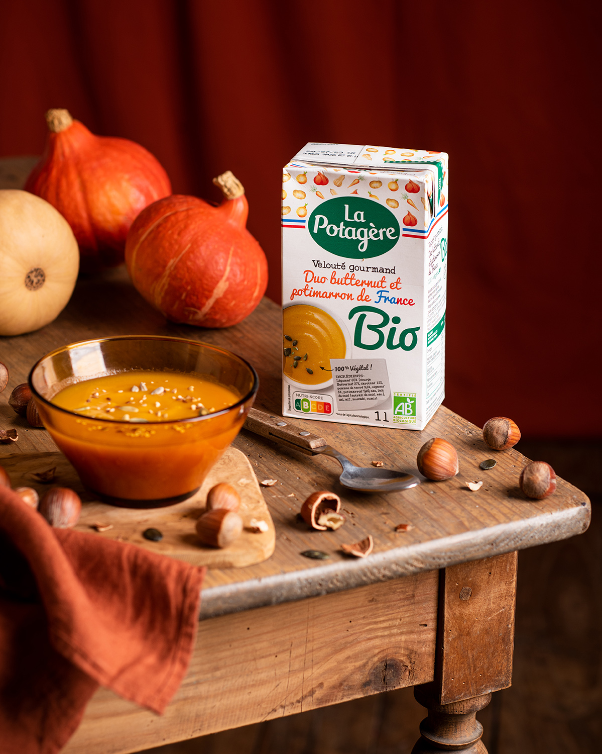 Mise en ambiance automne/hiver des produits La Potagère. Contenu à destination des réseaux sociaux de la marque La Potagère.