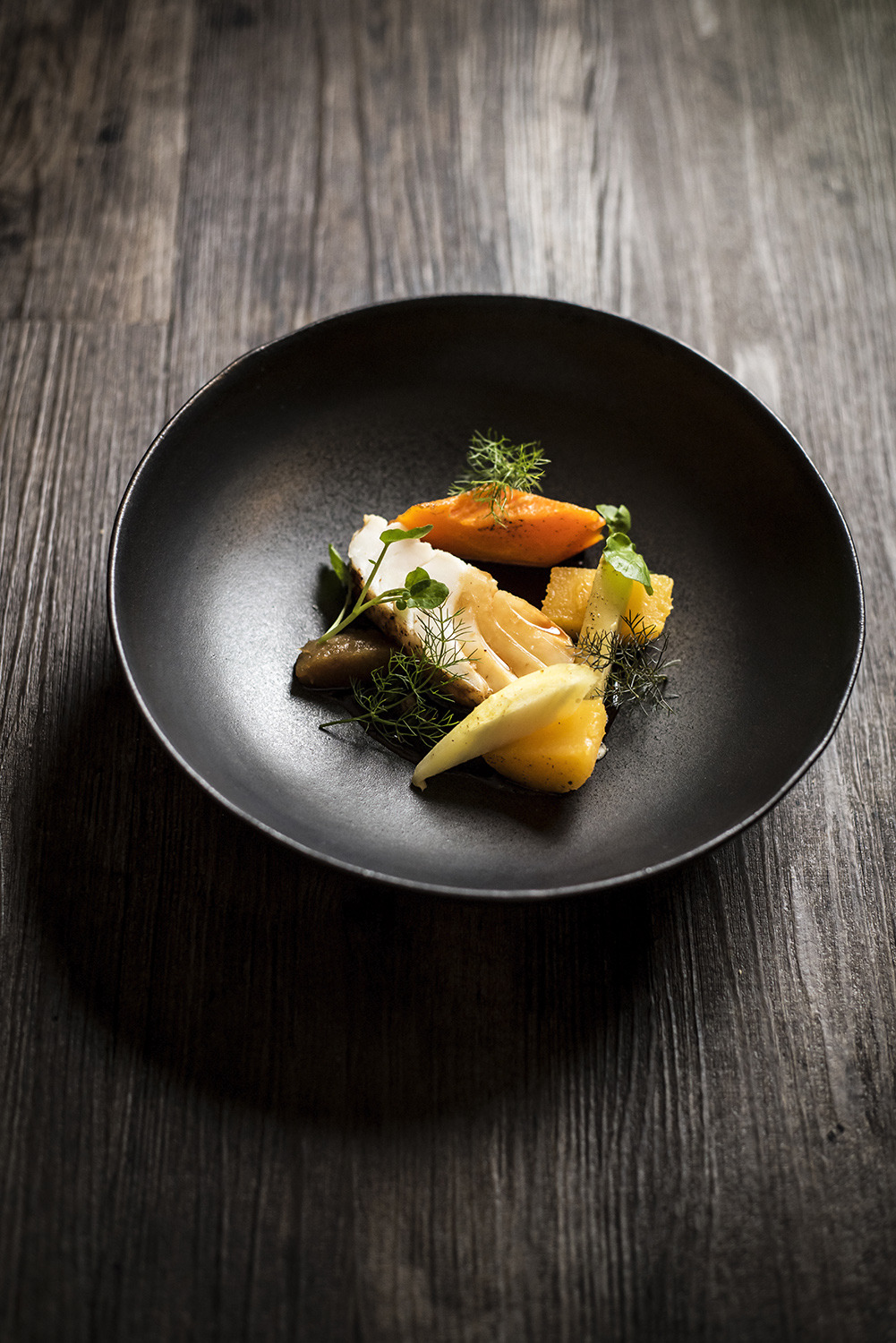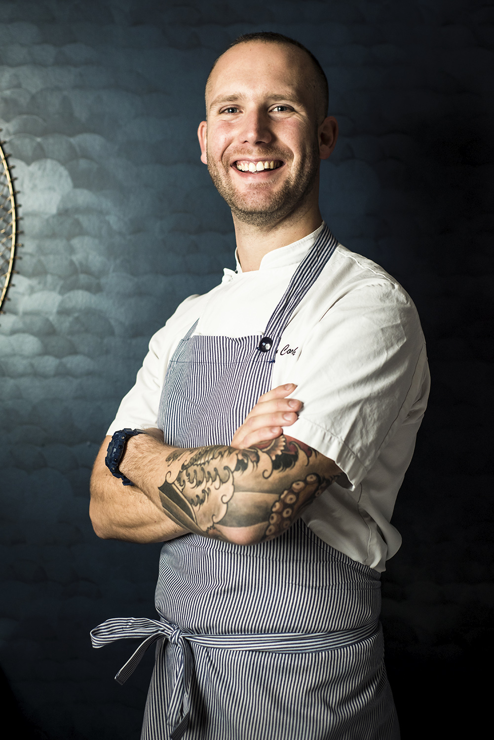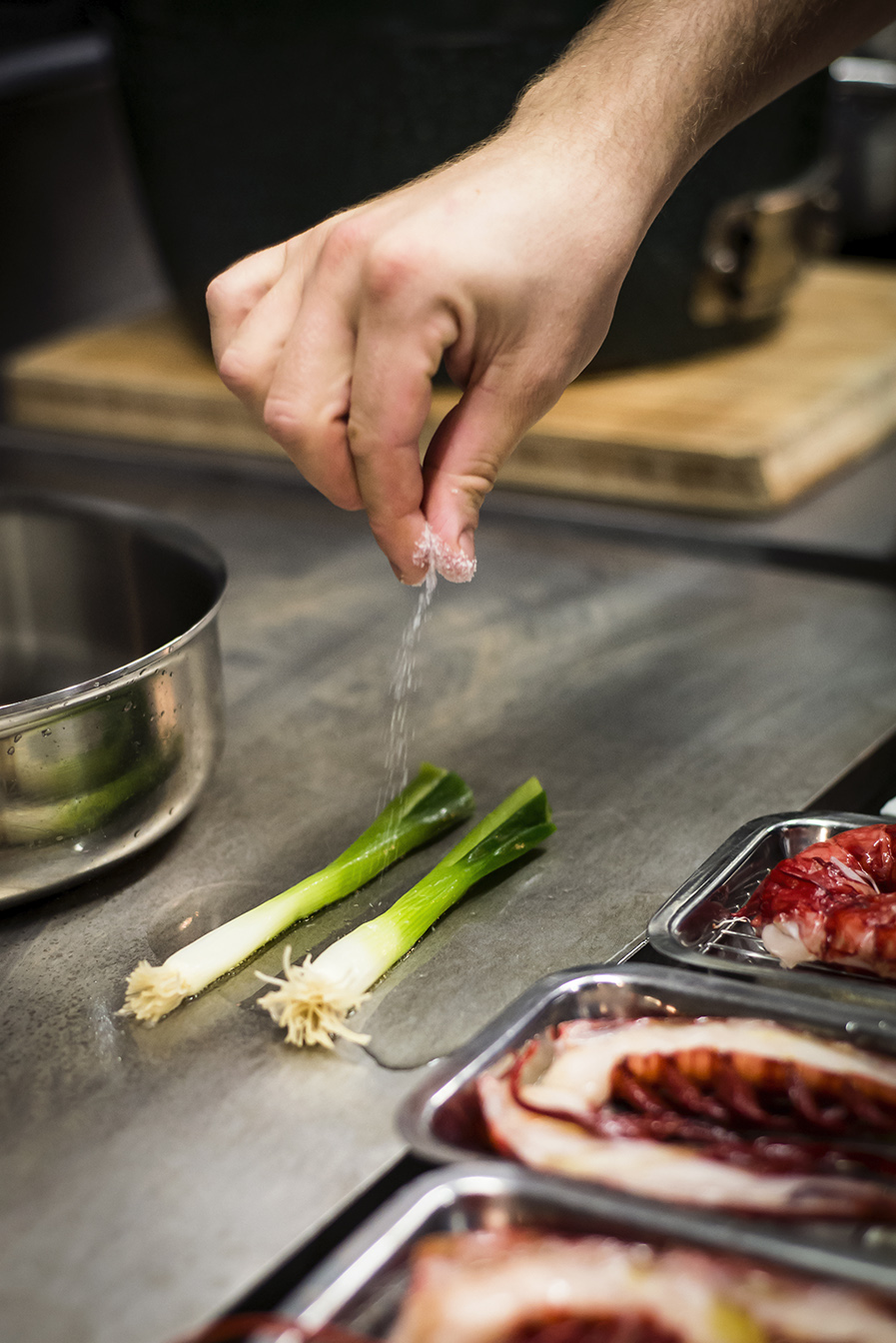 Portrait du Chef Julien Corderoch (Louise.) et photographie d’une recette en collaboration avec les marques Bordier et Qwehli.