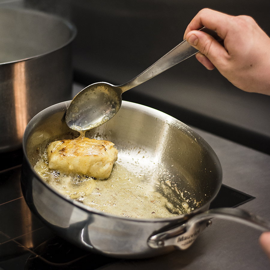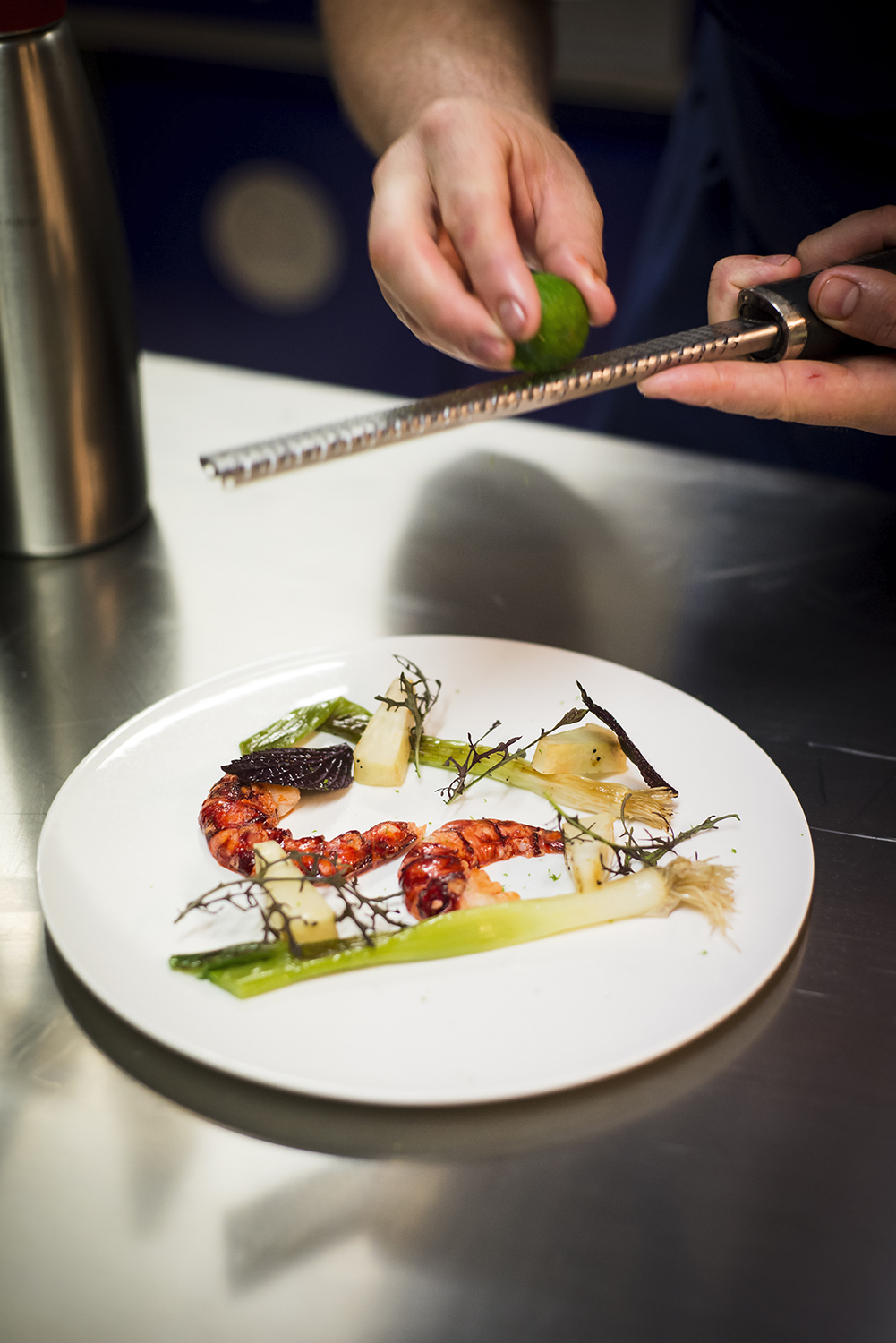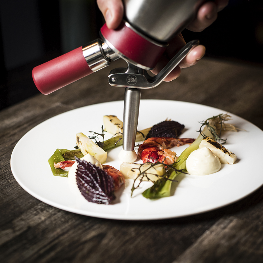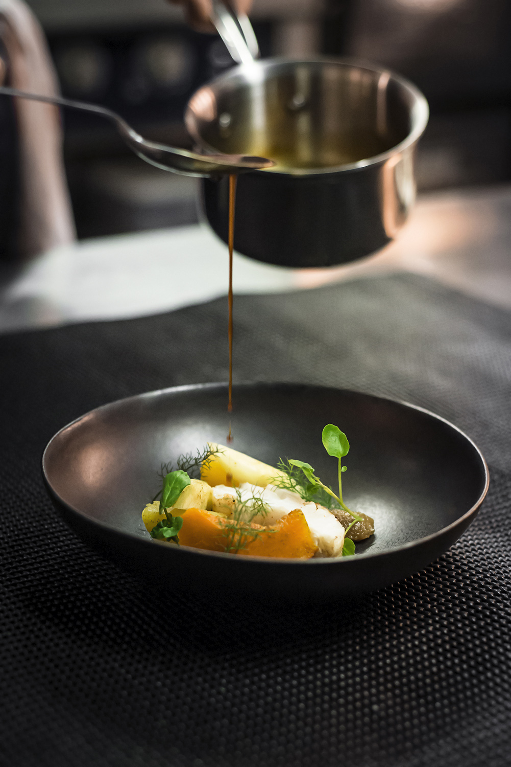 Portrait du Chef Julien Corderoch (Louise.) et photographie d’une recette en collaboration avec les marques Bordier et Qwehli.