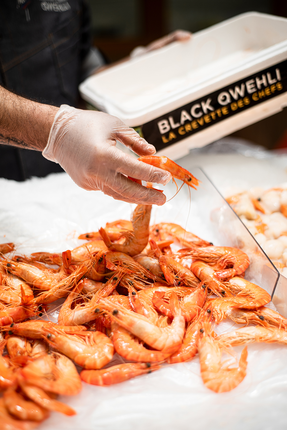 Qwehli propose des produits de la mer haut de gamme, dont leur fameuse crevette : la Black Qwehli.